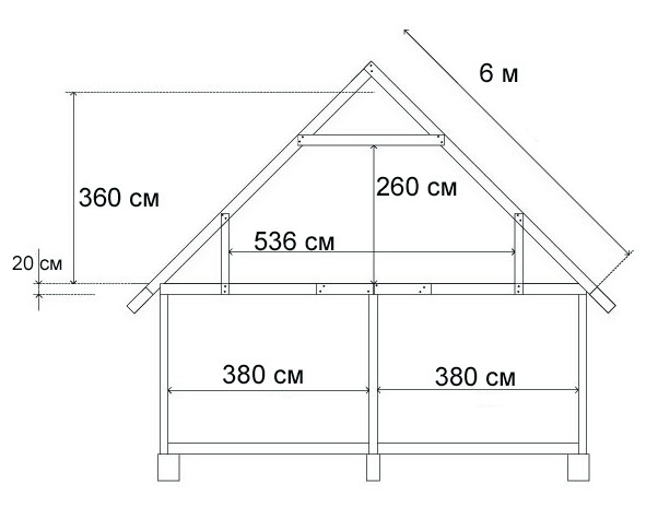 В зависимости от размера земельного участка шаг и высота желобов в конструкции двускатной крыши могут меняться.