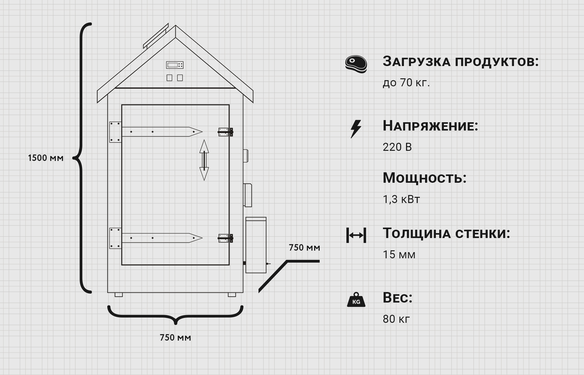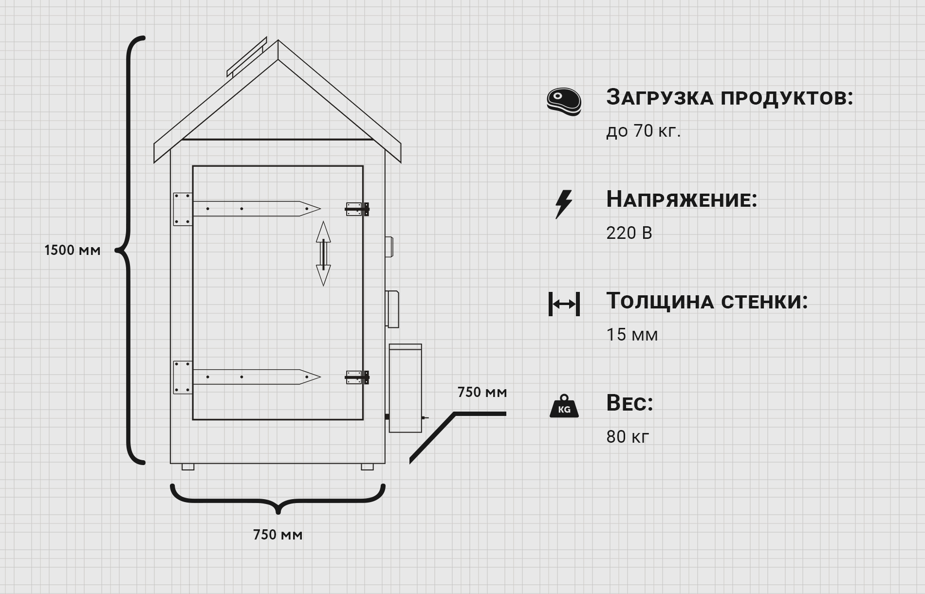 Это дополнительное пространство идеально подходит для копчения целых туш, огромных колбасных звеньев, больших кусков ветчины или говядины, а также колбасных изделий.