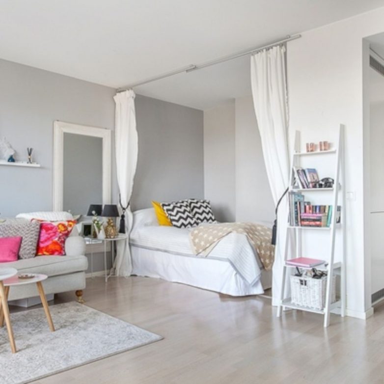 Если в вашей квартире всего одна комната — без стен, отделяющих спальню от гостиной, — она, вероятно, больше напоминает комнату в общежитии, чем дом для взрослых. Что ты можешь сделать? Множество. Даже если вы не работаете с избыточными квадратными метрами, существует множество приемов для создания отдельных зон в небольшом помещении для сна, работы или просто времяпрепровождения.