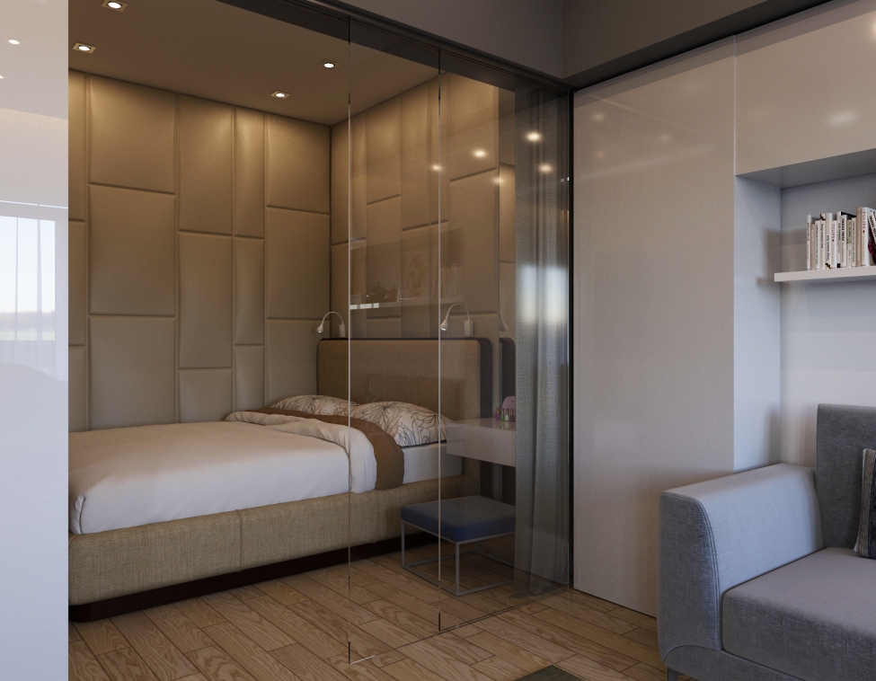 Применение в различных интерьерных решениях однокомнатной квартиры.