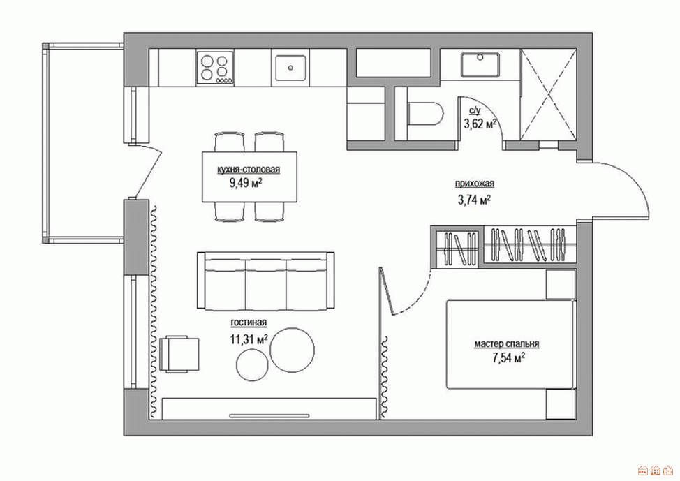 Что такое однокомнатная квартира? Квартира-студия — это место для проживания, в котором кухня, спальная зона и гостиная занимают одно пространство.![]()