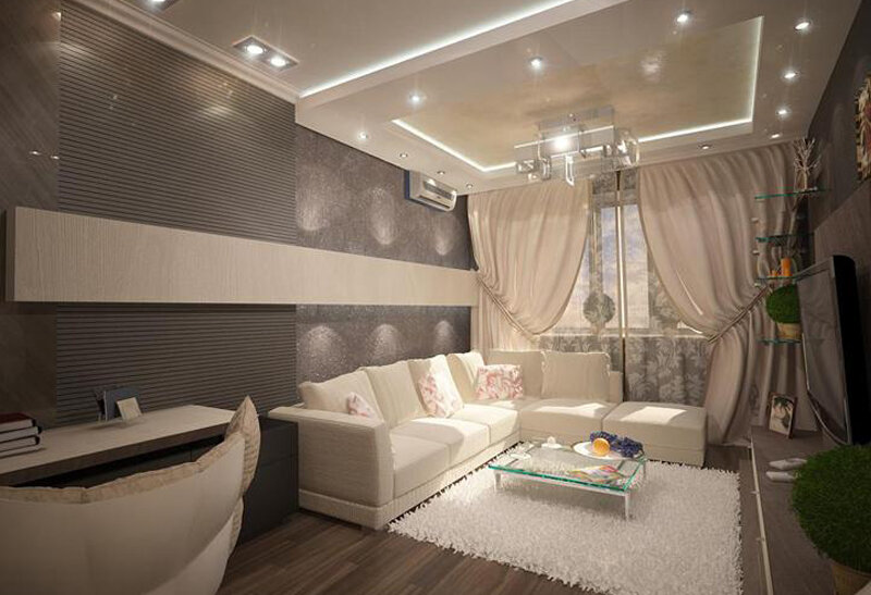Потолок в несколько уровней, подиум, встроенный шкаф вместо антресолей, светлые тона в отделке и мебели, зеркала и освещение, максимально приближенное к естественному, – эти детали помогут зрительно расширить границы квартиры и визуально увеличат ее площадь.