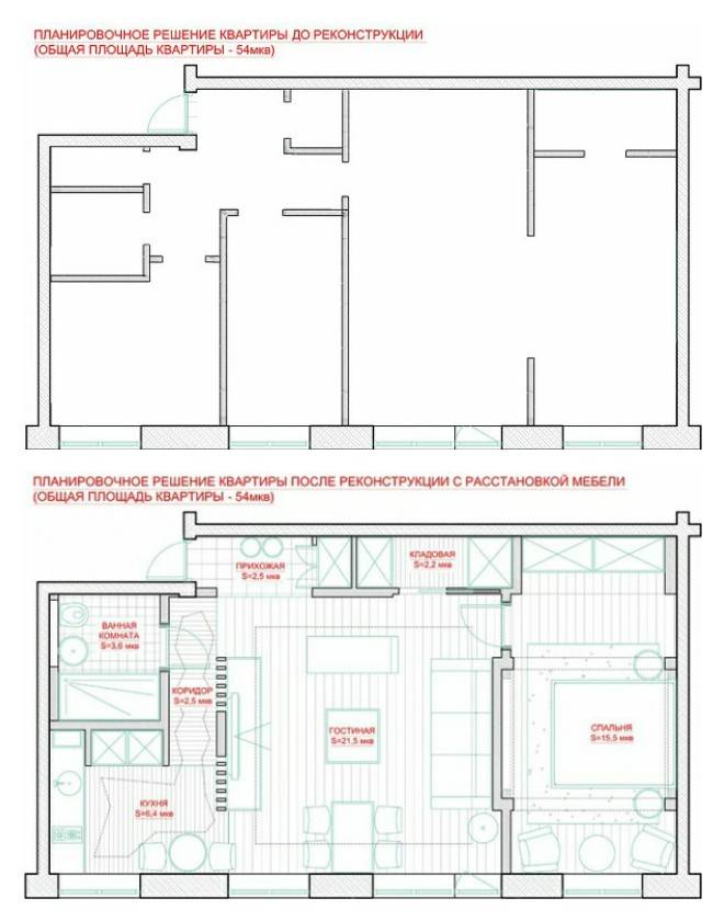 Варианты планировки двухкомнатной квартиры 54 кв м: Двухкомнатная квартира площадью 54 кв.м.