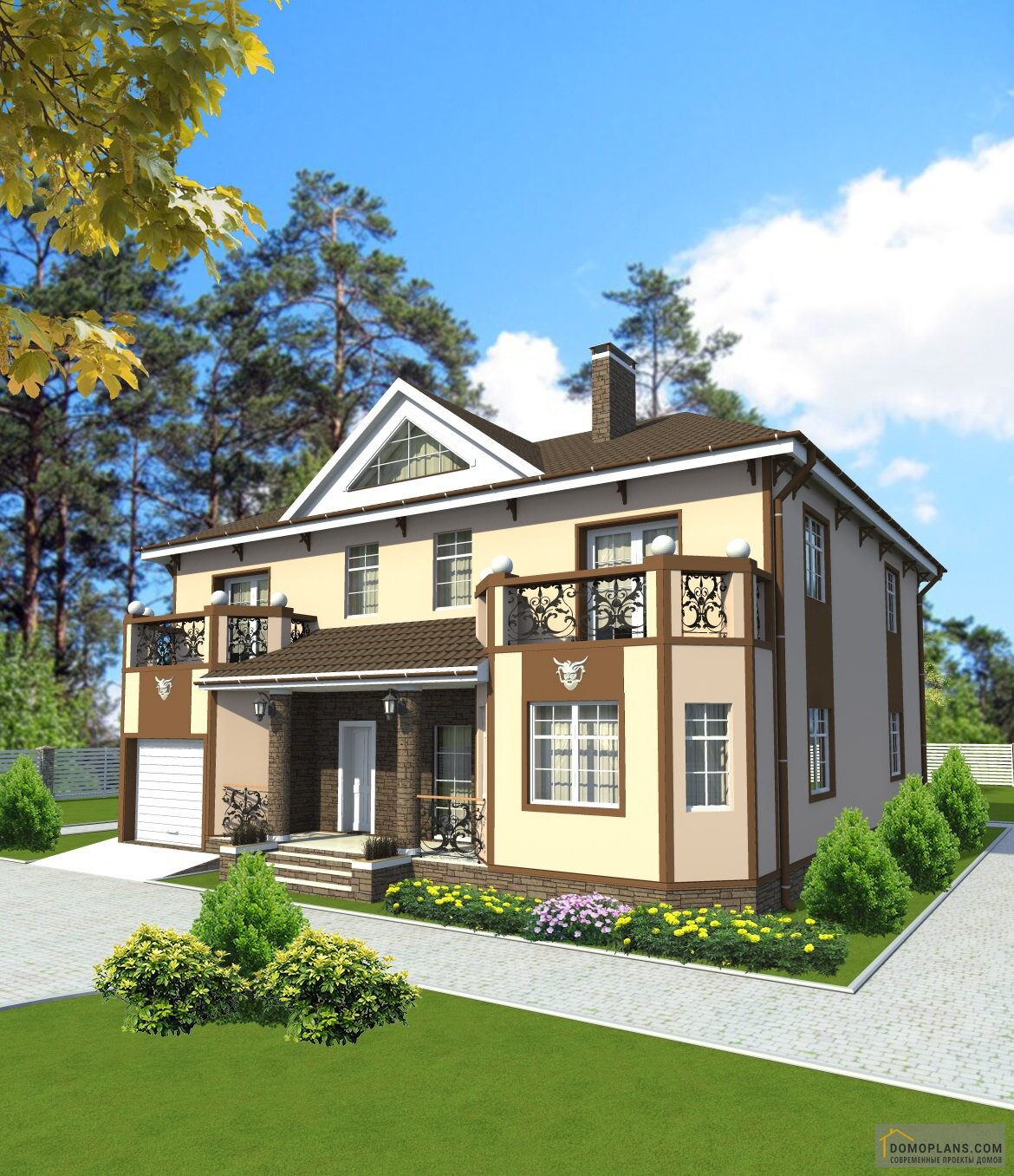 Это зависит от финансовых возможностей, особенностей участка, желания хозяев и т. д. Двухэтажный кирпичный дом может быть с гаражом, эркером, балконом, подвалом.