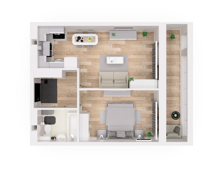 - полная 3D визуализация планировки, позволяющая каждому из клиентов сделать осознанный выбор, а также оценить все преимущества и недостатки выбранной организационной парадигмы для одной из комнат;