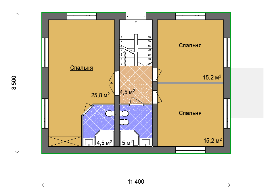 Планы дома 8×10 с 2 спальнями Террасная крыша