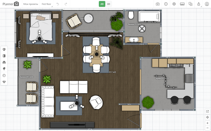Самое приятное то, что вам не нужно ничего загружать на свой компьютер или устанавливать приложение, чтобы использовать их. Все, что вам нужно сделать, это зайти на сайт, нажать на инструмент — и начать проектировать пространство своей мечты. Просто как тот.