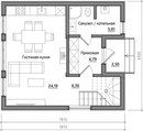 План первого этажа включает 3 маленьких помещения: гостиная, санузел и кухня