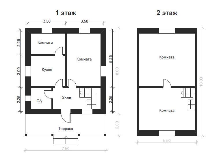 Есть в данном варианте и отличие в планировке. Если в предыдущем проекте гостиная занимает половину первого этажа и объединена с кухней, то здесь их разделили. За счёт уменьшения площади гостиной получилась ещё одна спальня – пусть маленькая, но в ней вполне можно сделать гостевую комнату или кабинет. Обе спальни, расположенные наверху, имеют примыкающую гардеробную, а их компактный размер вполне достаточен, чтобы не чувствовать тесноты или дискомфорта от излишнего пространства.