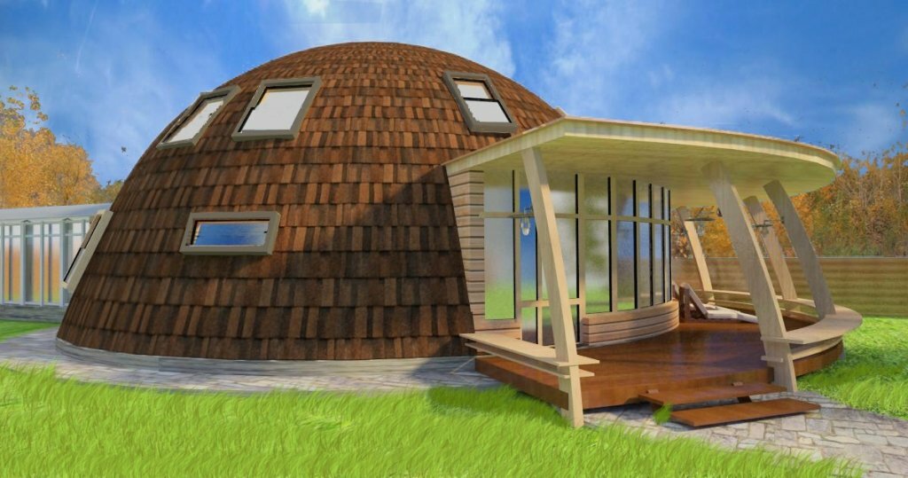 Купольным домом называют жилище, которое имеет круглое основание. Крыша в таком доме имеет форму конуса. Стены изготавливают из разнообразных материалов, таких как дерево, камень, бетон.