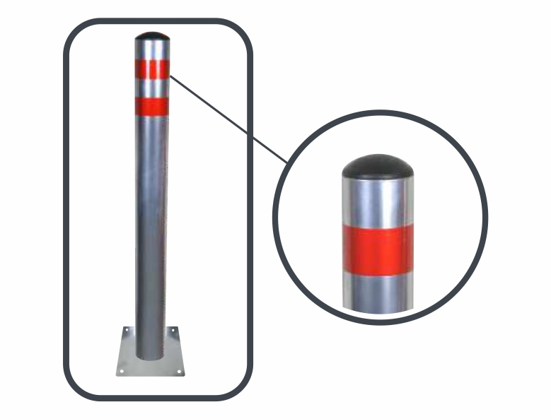 Монолитный столб блокиратора выполнен из стали с толщиной стенки от 16мм и обладает высокой ударопрочностью. При наезде на стол энергия удара передается на крышку и распределяется на другие элементы и на заглубленный в грунт фундамент.