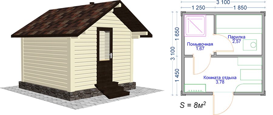 Баня 3 на 3: планировка, фото и размеры