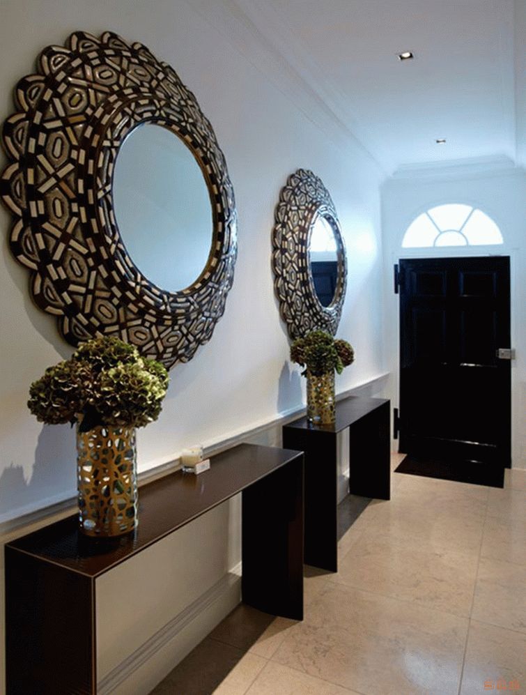 Круглые зеркала, квадратные зеркала и прямоугольные зеркала лучше всего подходят для установки над консольным столом.