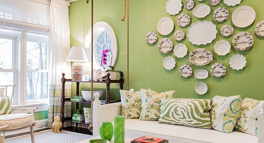 Цвет подбирайте под оттенок обоев или текстиля. На однотонном покрытии хорошо смотрятся контрастные фигурки или даже разные оттенки, узоры. Для пестрых вариантов лучше подобрать что-то однотонное, но чуть темнее или насыщеннее обоев.