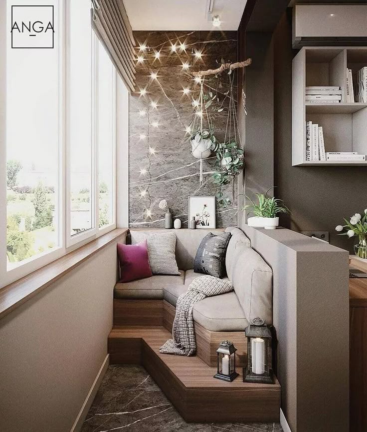 Возьмите этот великолепный балкон от Tarzmeselesi: набор деревянных ящиков подпирается по концам, накрывается подушкой, и вуаля! Идеальные стулья, чтобы посидеть за барной стойкой и полюбоваться видом на город. В качестве бонуса ящик также может служить дополнительным хранилищем, что всегда выгодно.
