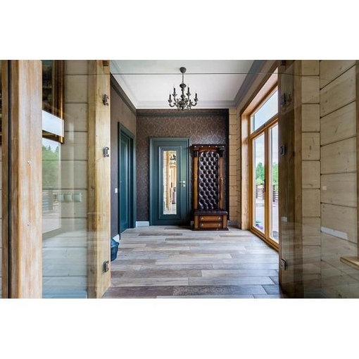 В интерьере бревенчатого дома удачным решением станет выложить пол натуральным камнем или метлахской плиткой. Стильный вид имеет ламинат или паркет с древесной фактурой. Наиболее приемлемым и бюджетным способом отделки является линолеум, обладающий огромным количеством расцветок. Для пола в коридоре не желательно применение бытового линолеума.