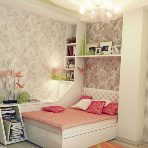 И, обязательно, мебель. Например, если объединить кровать вместе со шкафом, получится самое настоящее пространство! А место под кроватью используйте для хранения вещей!