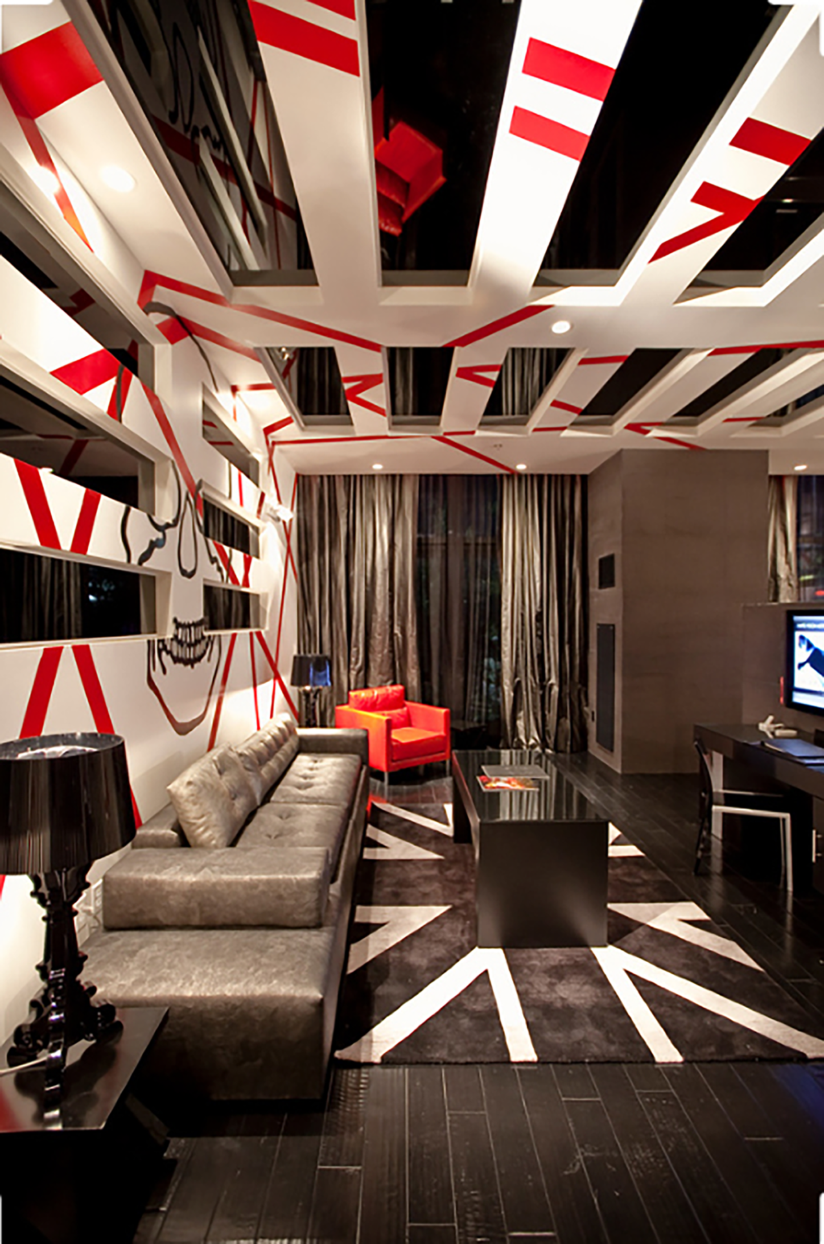 В какой комнате лучше всего организовать бело-красно-черный дизайн?