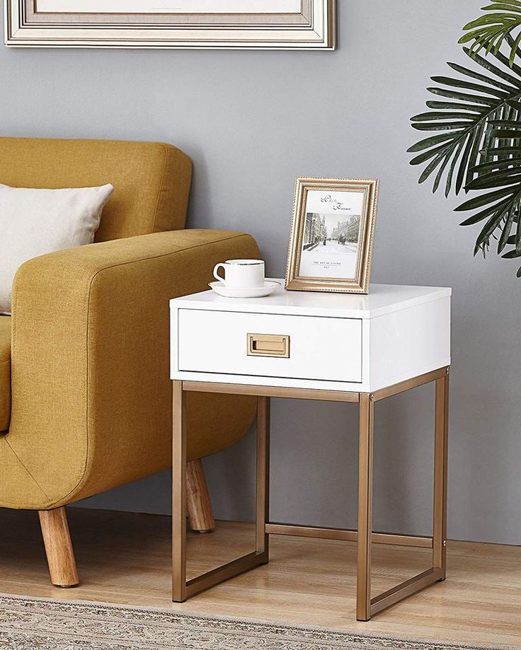- Сочетаемость с мебелью в комнате: например, кровать белого цвета и тумбочка.