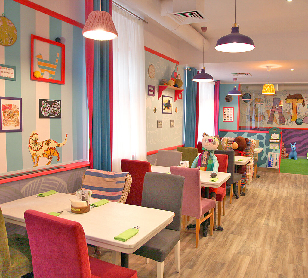 Детские кафе оформляют по мотивам сказок, с яркими декорациями на стенах и аналогичным декором. Иногда предусматривают наличие ведущих с развлекательными программами, которые сделают отдых малышей более ярким и запоминающимся.