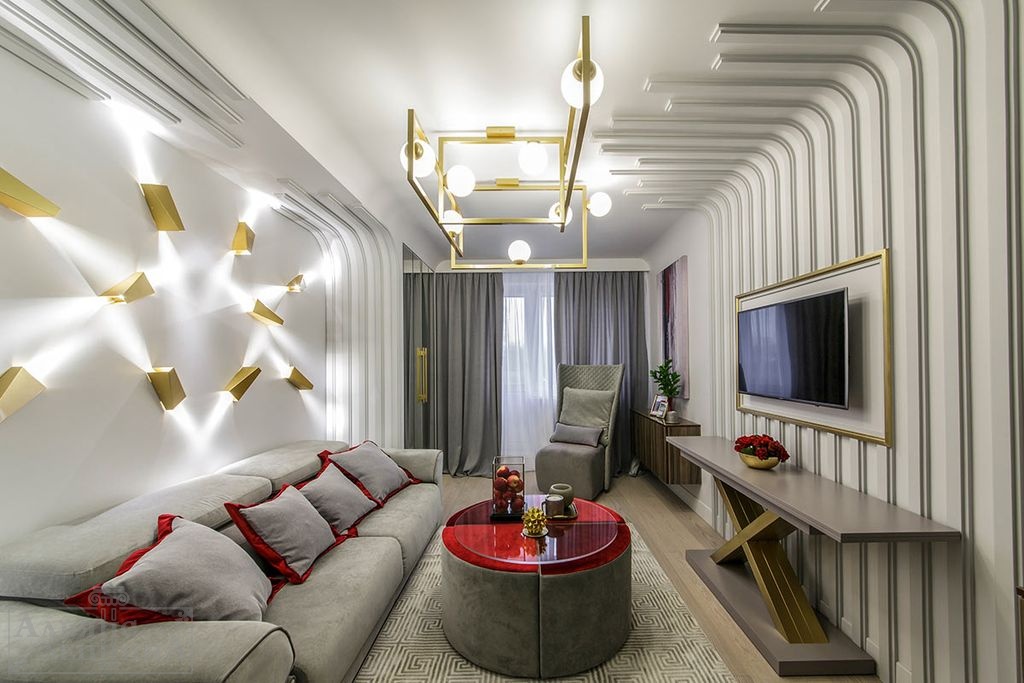 Дизайн узкого зала в квартире фото: Дизайн узкого зала (77 фото)