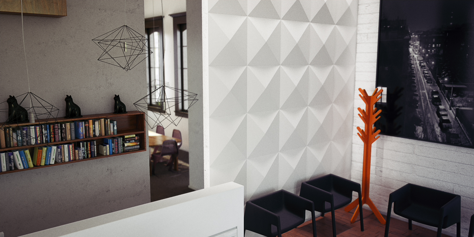 Небольшие стеновые панели с 3D-дизайном отлично подходят для уникальных произведений искусства, которые добавляют художественного ощущения дизайну стен в небольших помещениях, таких как фойе, коридоры и подъезды.