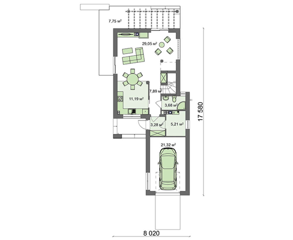 - Одна и его стен не имеет окон, чтобы дом можно было максимально приблизить к границе земельного участка;