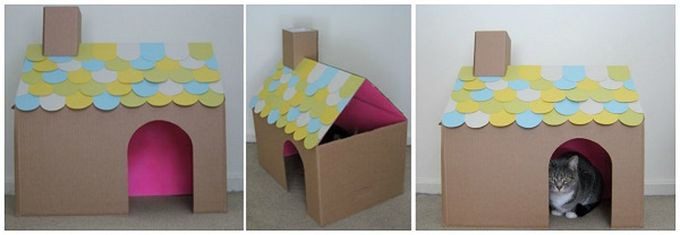 Если ваши дети слишком стары для домов из картонных коробок или, может быть, у вас нет детей, вы все равно можете использовать эту большую картонную коробку в качестве дома для своего питомца! Домашние животные, как правило, меньше детей (и менее привередливы, когда дело доходит до декора), поэтому вы можете оформить дом из картонной коробки так, как вам заблагорассудится. Просто не забудьте положить любимую подушку или одеяло вашего питомца внутрь, чтобы побудить его использовать свое новое пространство. Взгляните на этот потрясающий пример кошачьего домика, представленный в The Green Mad House, чтобы получить некоторые идеи.