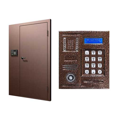 Основные требования к изготовлению металлической двери для домофона: двухслойная с ребрами жесткости, толщина наружного листа и листа дверной коробки 2-3 миллиметра, при использовании электромеханического замка он должен устанавливаться в центре (при этом усилие на отрыв в данном случае приходится прямо на замок, и дверь при этом не перекашивается и не деформируется, как в случае с расположением замка в верхнем углу дверного проема).