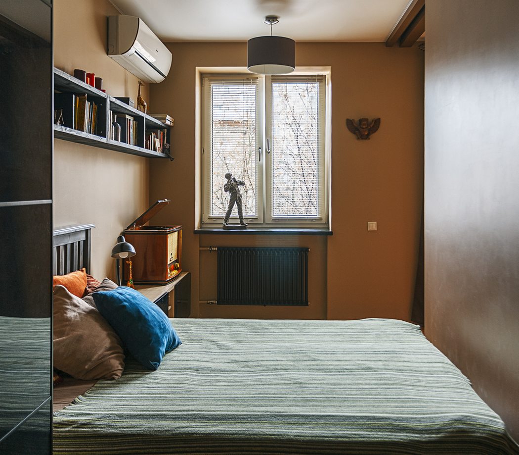 Маленькая комната, в которой установлена ширма, может быть разделена на рабочую зону и зону отдыха. Благодаря такому решению человек, ведущий ночной образ жизни, не будет мешать отдыхающим домочадцам.