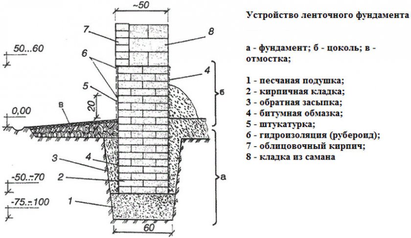 Рис. 1.1: Схема мелкозаглубленного ленточного фундамента