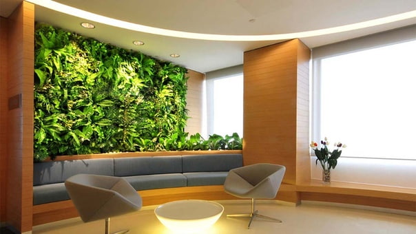 Вскоре наличие растений в офисах и интерьерах городских квартир получило новый стимул развития. Озеленение по вертикали основано на завершенных экосистемах. Растения поглощают вещества, загрязняющие воздух, а их листья выделяют кислород, что создает в помещении благоприятный для человека микроклимат.