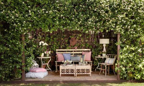 Если на территории высадить множество вьющихся видов растений, то легко можно скорректировать микроклимат на небольшом участке.