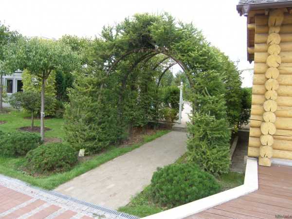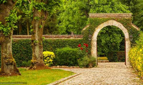 Некоторые ландшафтные дизайнеры используют другой способ вертикального озеленения – когда к арке примыкают не вьющиеся лианы, а кустарники или деревья. Подобные зеленые проходы (например, из можжевельника или чубушника) – потрясающее зрелище. Естественно, такие арки тщательно формируют, выстригая ветки изнутри.