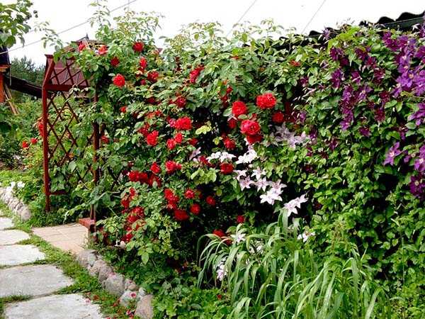 Миксбордер с розами и клематисами