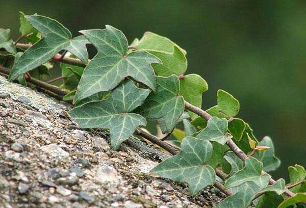 Плющ – вечнозеленый, относится к категории лазящих. Окрас и форма листьев – различен, обладает воздушными корнями. Ядовит.