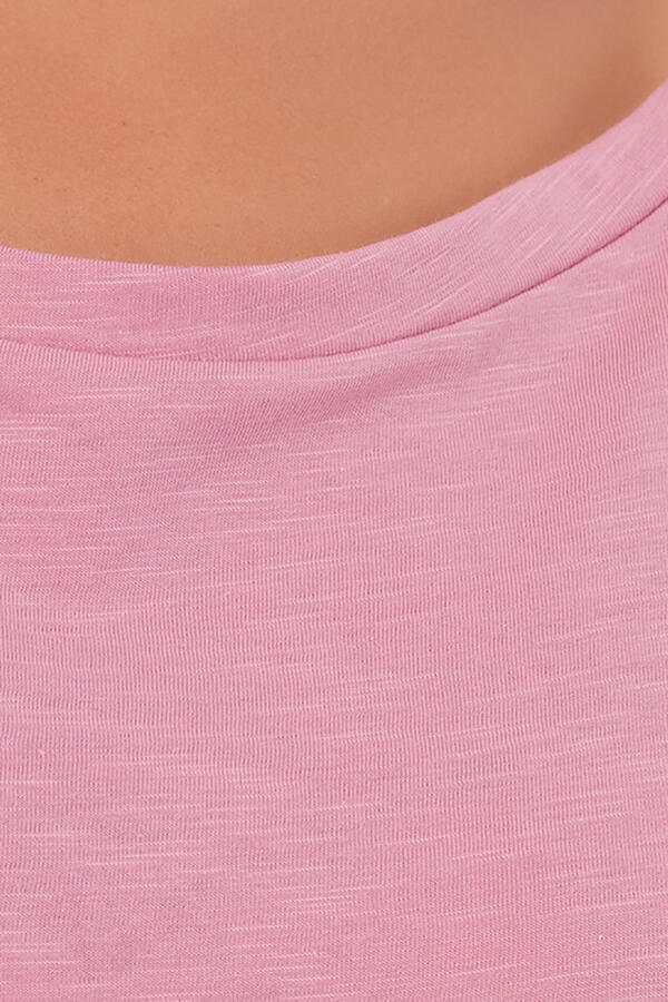 Идеально смотрятся розовые топы или футболки в сочетании с джинсами.
