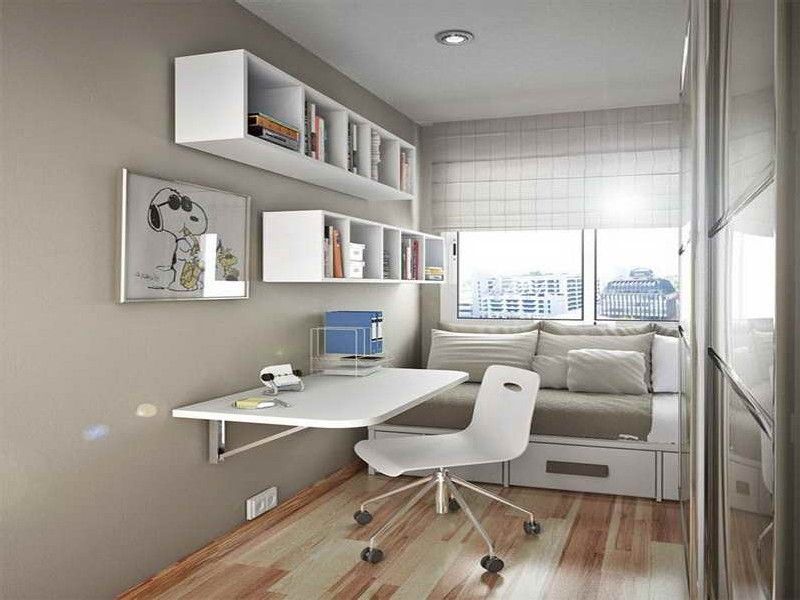Даже в крошечной комнате нашлась возможность совместить рабочую зону и зону отдыха. В ситуациях, когда пространства не хватает просто катастрофически, всегда выручают кровати-балконы, выдвижные ящики и мебель по индивидуальному заказу.