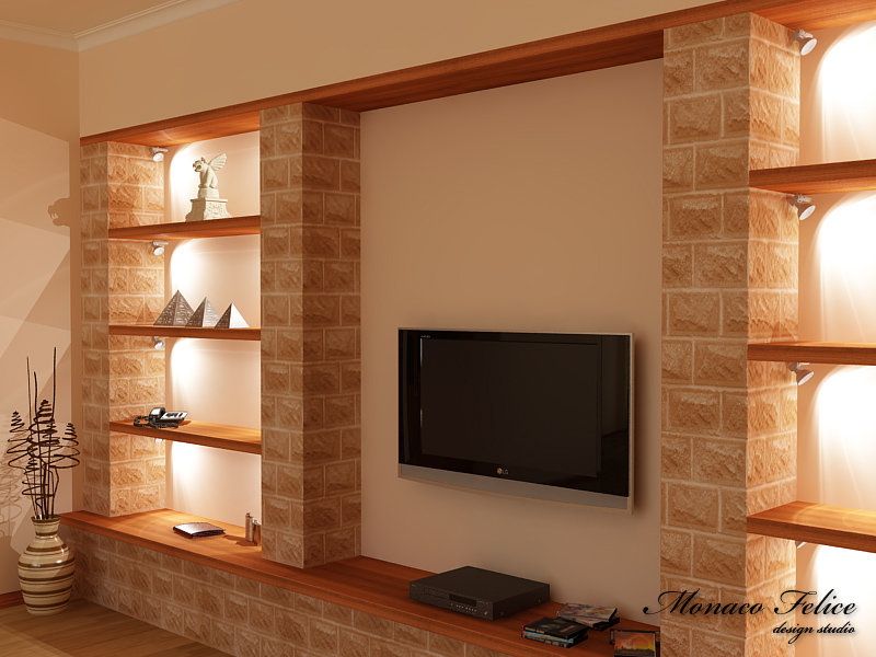 Что хранят в стеновых нишах? В углубления небольшой глубины и размера обычно ставят памятные статуэтки или вазочки, можно разместить в них небольшие книжные полки. Ниши большего размера могут вместить в себя телевизор или картину.