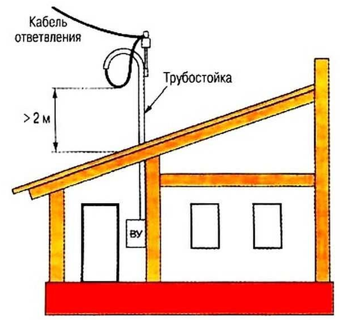 Левый провод можно проложить в квартире. Здесь используется тот же принцип монтажа, что при создании линии под землей. Однако это будет сделать сложнее, чем в частном доме.
