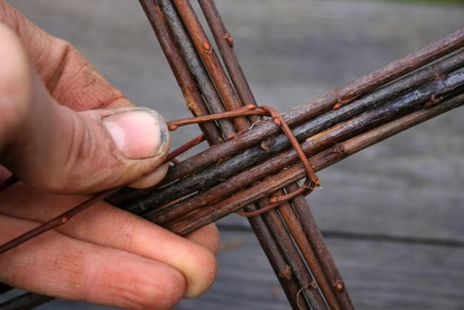 После того, как все 12 веток будут вставлены, пора связать их еще одним небольшим кусочком ивы.