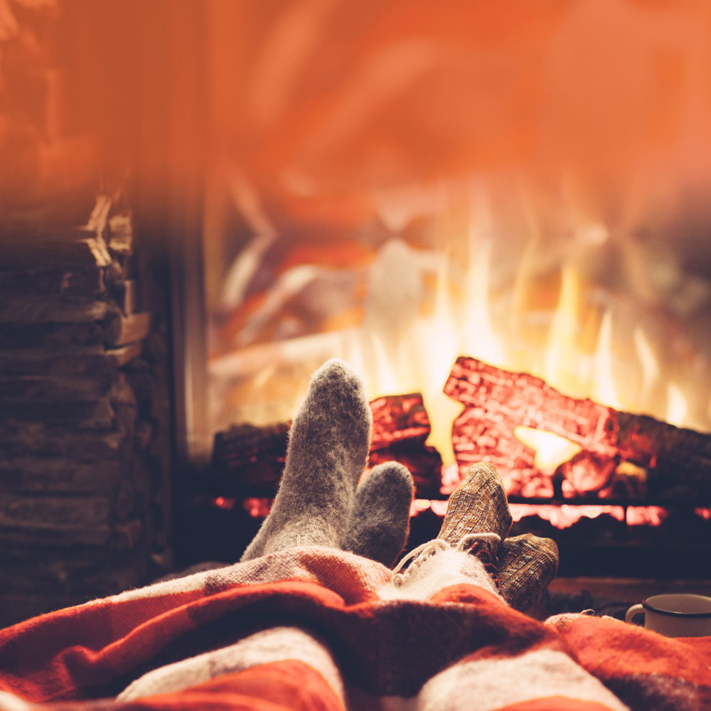#38797651 — Warming up by the fireplace