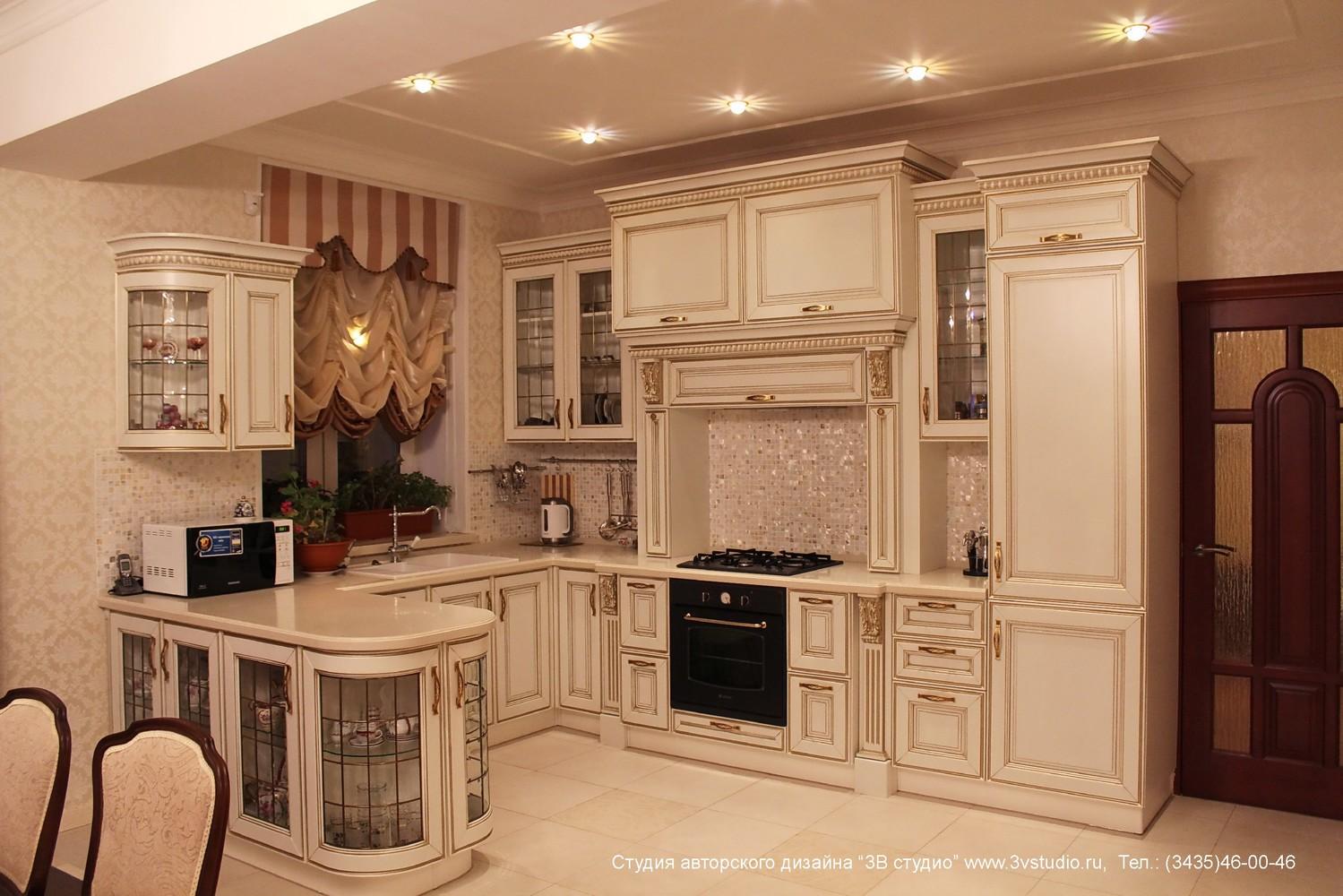 Оцените фотографии тоже неплохих классических кухонь, но в исполнении не до потолка. Общий уровень сразу падает: