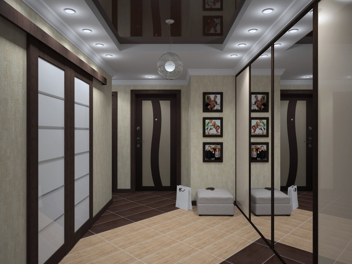 Выбрав удачный вариант отделки потолка, важно грамотно организовать освещение, потому как большинство коридоров представляет собой помещение без окон. Рассматривая фото коридоров в квартире, можно обратить внимание, что для обеспечения комнаты светом используют такие приборы: