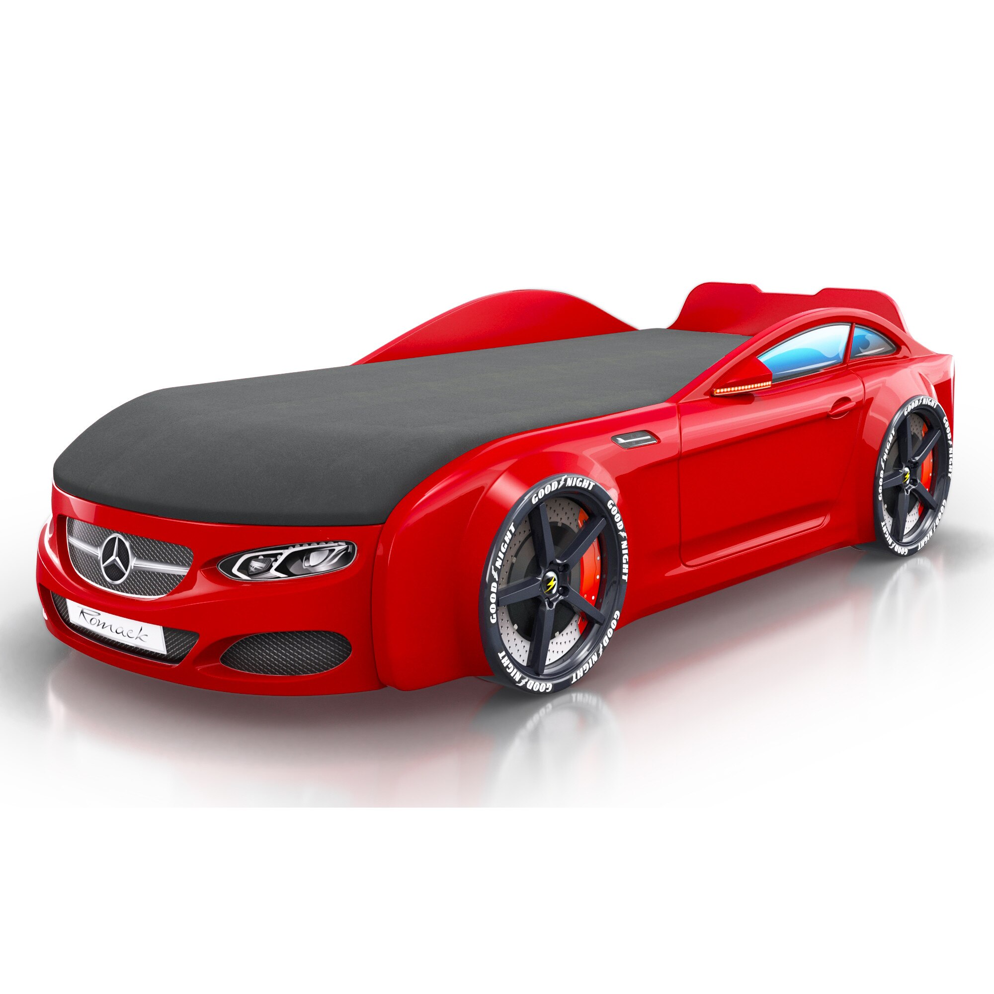 - Renner 2. В такую кровать-машину встроена светодиодная подсветка, что улучшает качество готового изделия. Основным материалом в изготовлении корпуса является пластик, дно автомобиля из деревянных фланелей. Основу оформляют ярко, максимально приближено к оригиналу.