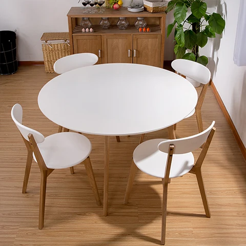 Материал любого обеденного стола должен быть влагостойким, легко моющимся, устойчивым к высоким температурам (например, от горячих тарелок или чашек), долговечным. Идеальный вариант – массив дерева, более бюджетный МДФ или ламинированный ДСП. Стекло, хоть и визуально смотрится в интерьере легче и невесомее, чем дерево, для кухни – это довольно привередливый материал, требующий регулярного ухода.