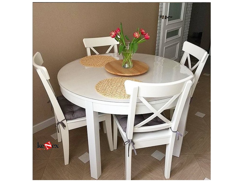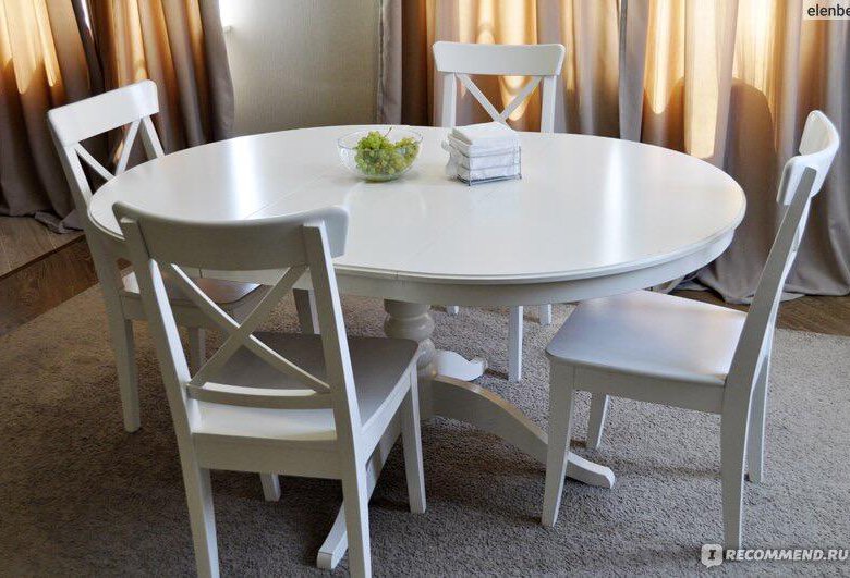 В некоторых комплектах столы имеют стеклянную поверхность. Кресла в комплектах для столовой IKEA бывают разные: деревянные, пластиковые, с высокой или средней спинкой, с подлокотниками и без, с мягкой обивкой (хлопок, кожа и т.д.), или без нее – все зависит от ваших потребностей, предпочтений и материальных возможностей.