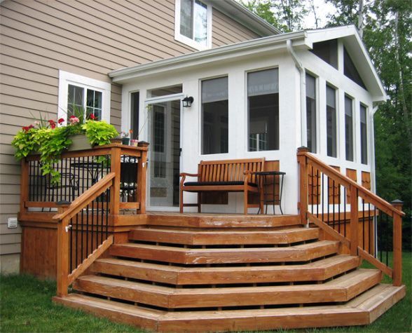 Для деревянных частных домов такой выбор очевиден. Но и к бетонным, панельным домам так же можно пристроить деревянное крылечко.
