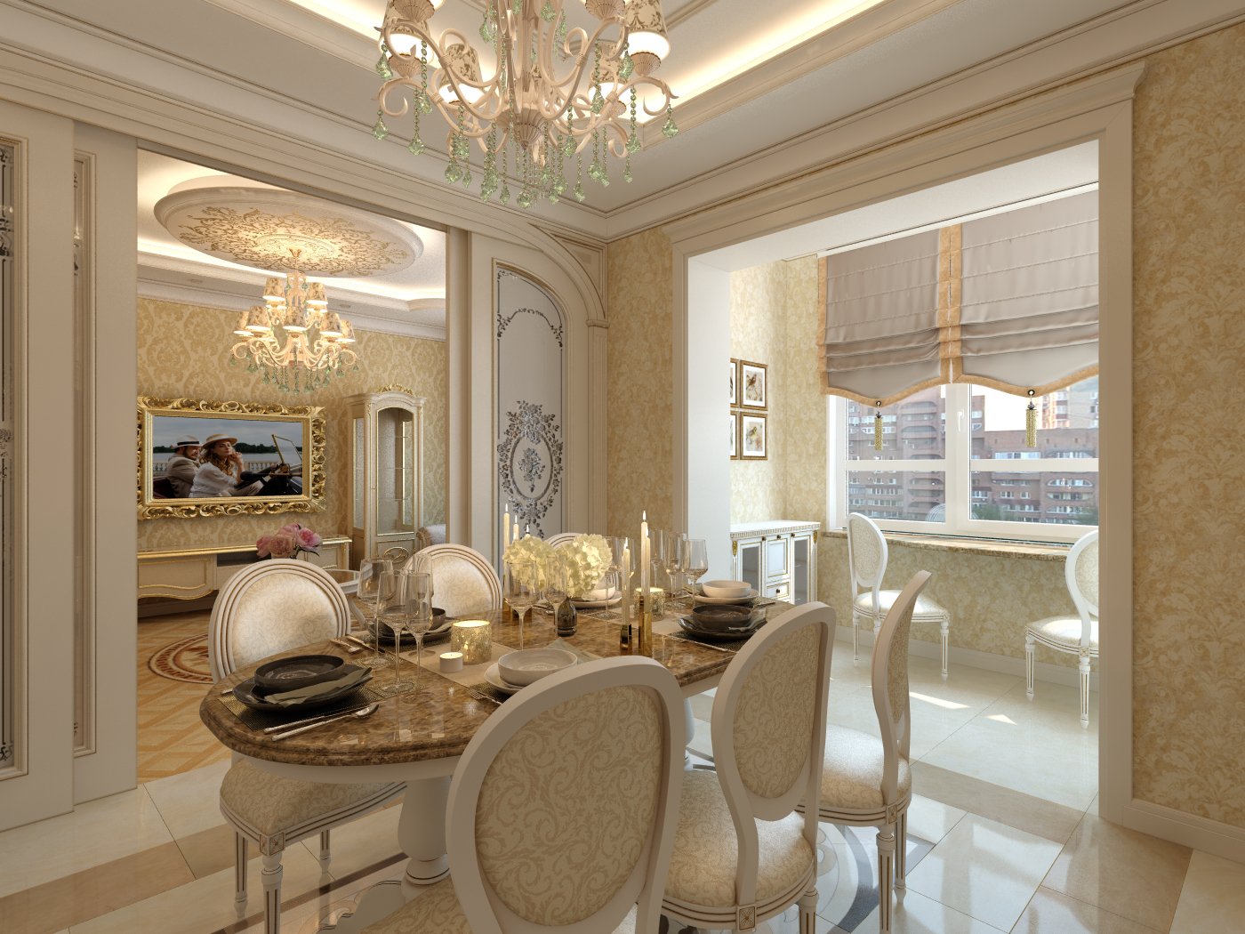 Кухня-невидимка + столовая + гостиная