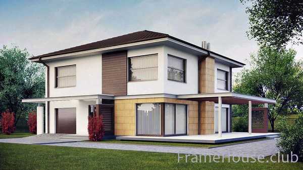 Квадратный каркасный дом с гаражом легко подобрать в полном соответствии с потребностями и желаниями членов семьи.